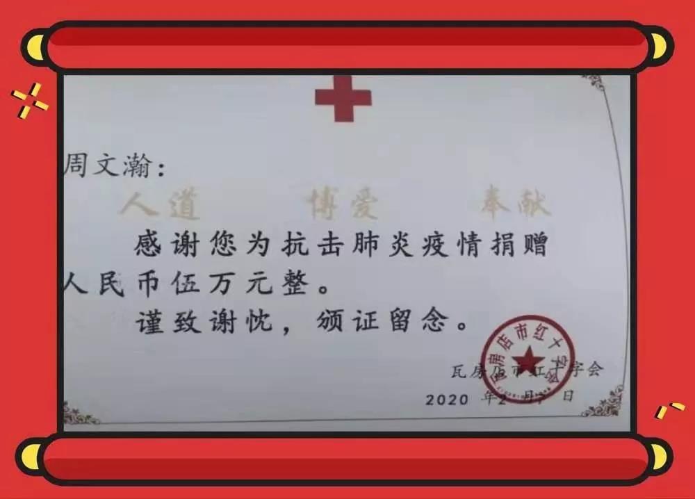 受疫情影响,销售、生产研发等业务处于停滞状态,大冶轴在全面部署做好“新型冠状病毒感染肺炎”疫情防控工作的同时仍顶住各方面压力积极响应“抗击新型冠状病毒感染肺炎疫情”慈善募捐活动,为武汉疫情捐款壹佰万元及防护口罩数万副,支援湖北武汉及周边疫区前线疫情防治工作,董事长助理周文瀚先生更以个人名义捐款伍万元,为抗击疫情贡献一份绵薄之力。