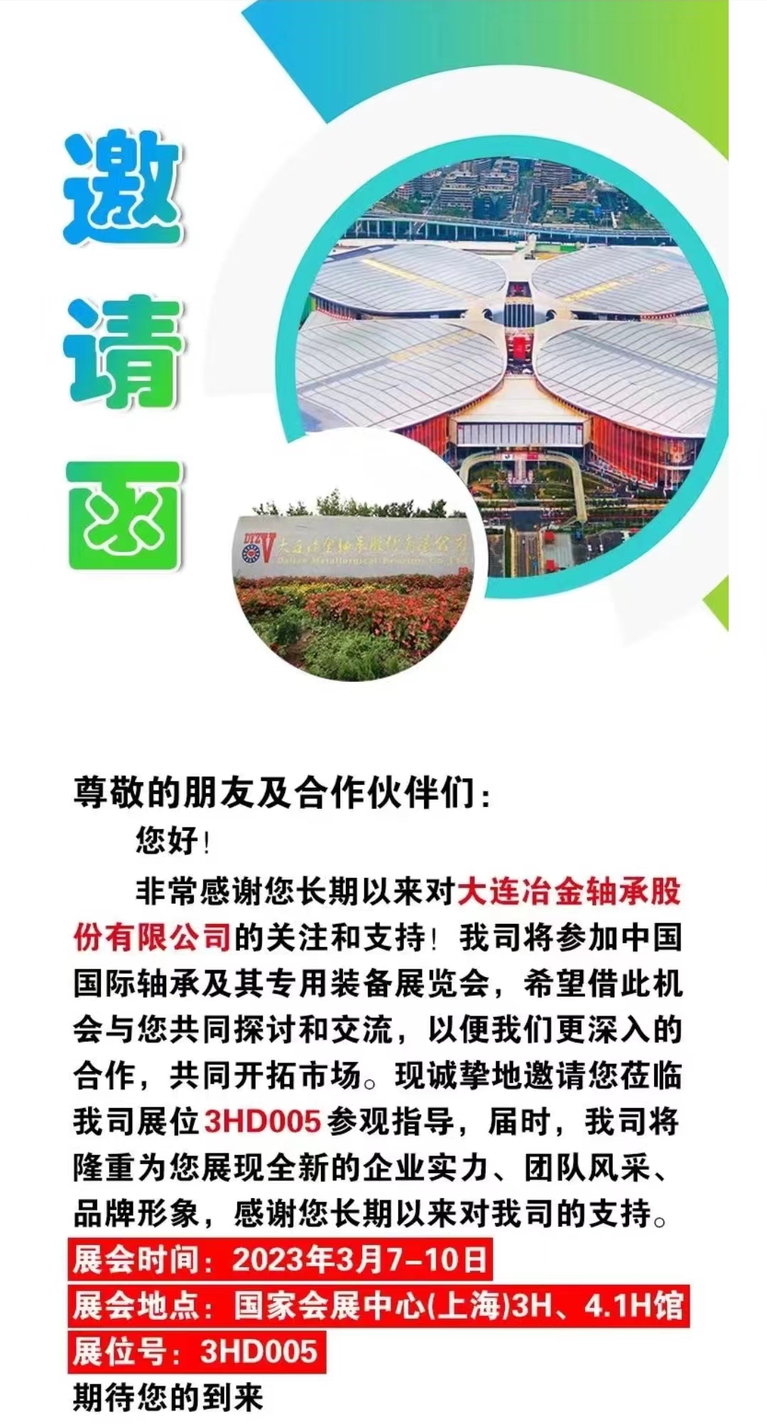 【展会邀约】大连冶金轴承股份有限公司与您相见,2022中国国际轴承及其专用装备展览会 我们的展位号(3HD005)期待您的到来